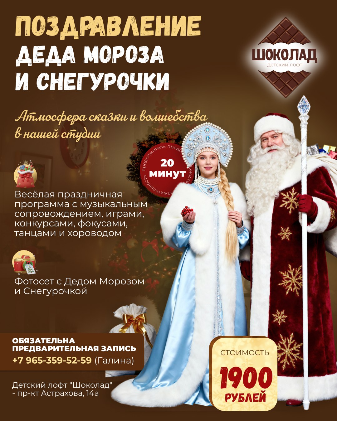 Открыто предварительное бронирование на поздравление от весёлого и нарядного Дедушки Мороза и красавицы Снегурочки!