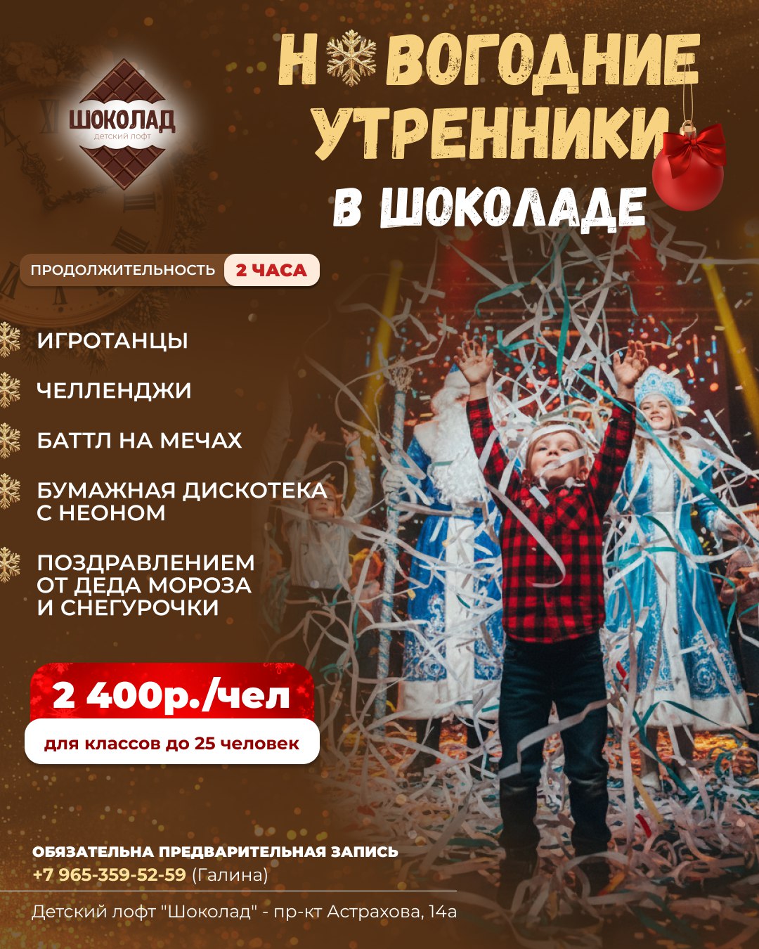 Приглашаем классы на крутые новогодние праздники в лофт "Шоколад"!